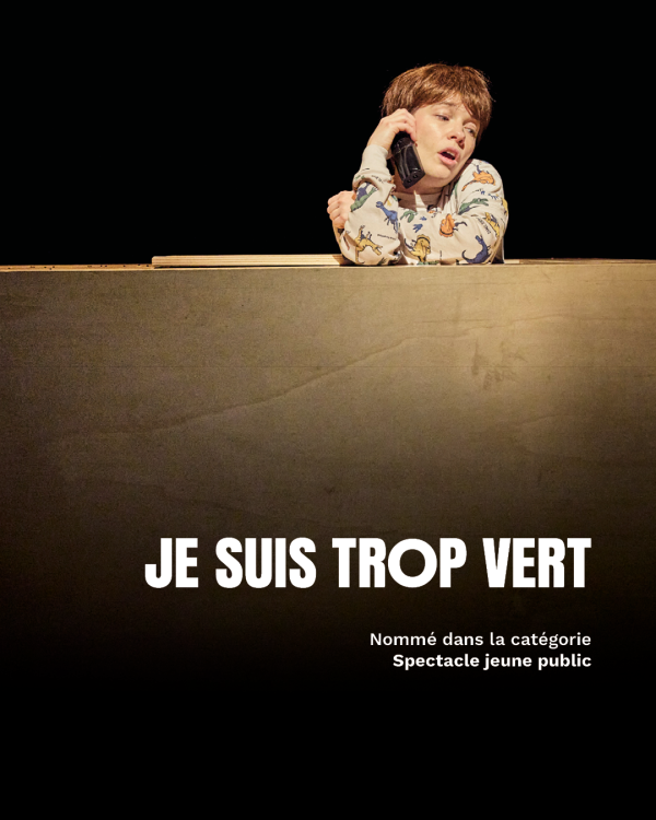- JE SUIS TROP VERT de David Lescot / Compagnie du Kaïros dans la catégorie Spectacle jeune public (accueilli à La Coupe d'Or en en décembre 2025)